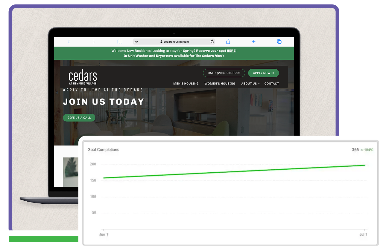 The results speak for themselves: Incline Marketing's comprehensive website redesign and conversion rate optimization strategy led to remarkable growth. By addressing key issues like the lengthy application process and outdated design, Cedars Housing saw a 300% increase in student housing applications without the need for additional traffic. The improved user experience not only boosted lead generation but also reduced bounce rates. Thanks to this approach, Cedars Housing is now on track to fully occupy both men's and women's complexes for the upcoming semester, ensuring a successful leasing season.